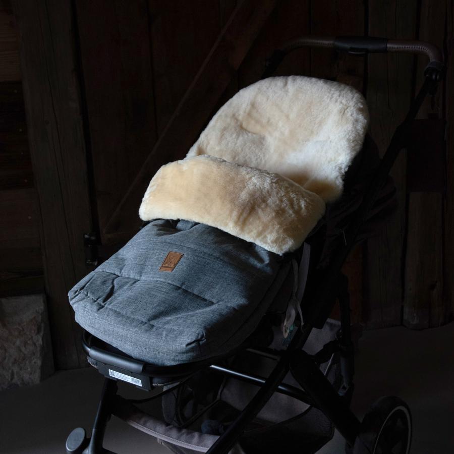 kleiner Lammfellfußsack für Tragschalen, Kinderwagen und Autositze der Gruppen 0 bis 1 und FahrradanhängerLammfell Haarlänge ca. 25 mm, geschorenaußen: wind- und wasserabweisender Polyesterinnen: ganz mit medizinisch gegerbtem Lammfell gefüttertkann im Kopfbereich zur Mumienform zusammengezogen werdenlange Klettverschlüsse auf der Rückseite ermöglichen die bequeme Durchführung und Positionierung der SicherheitsgurteGröße ca. 78 × 40 cmrutschhemmende Rückseite30°C Handwäsche mit speziellem Fellwaschmittel